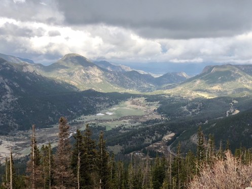 This past Sunday after lunch, we drove into Rocky for a bit of refreshment and renewal. It was interesting to walk up Trail Ridge Road past the barricade at Rainbow Curve and see what I normally don’t get to see for obvious reasons while driving. We were in and out of the clouds, but I was able to capture this beautiful view of Sheep Lakes. That drive and walk were much needed as both Denise and I processed a rather unusual and difficult Mother’s Day.