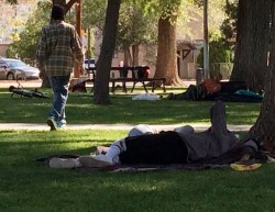 Later, a young man comes by the park table and asks for gloves.