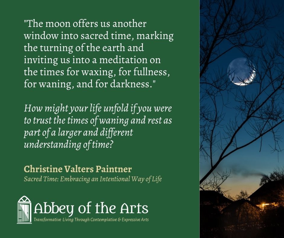 “The moon offers us another window into sacred time, marking the turning of the earth and inviting us into a meditation on the times for waxing, for fullness, for waning, and for darkness.”